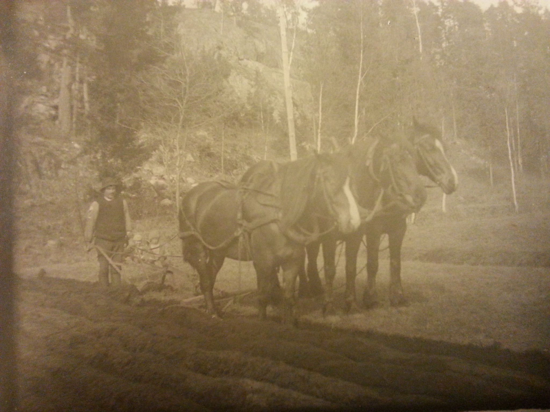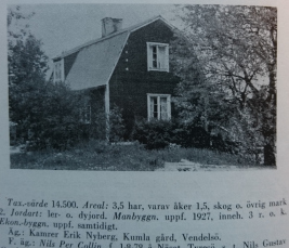 Bernhard Carlssons bostadshus byggt 1922. Halva huset var bostad resten förråd och källare. Det var var ju rätt små arealer. Gunnar hade 10 hektar och brodern Bernhard hade 6 hektar.