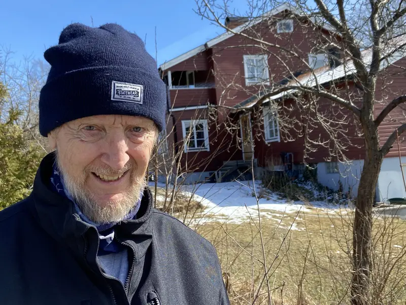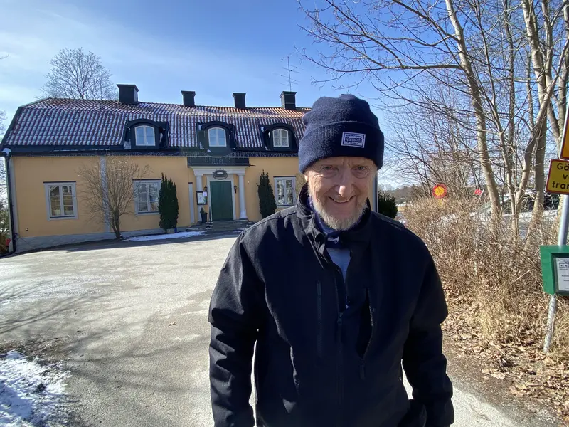 Bernt framför den kvarvarande flygen där hans farfar Gunnar, brodern Bernhard och Gunnars fästmö Amanda fick husrum under tiden som mjölkarrendatorer på Kumla Herrgård fram till 1910 då herrgården gick i konkurs och avvecklade mjölkhanteringen.