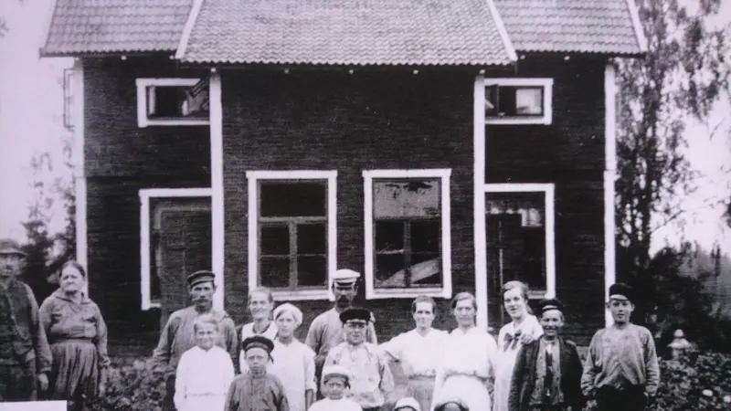 August och Hulda Andersons hus. Det har blivit tillbyggt med en tredjedel. Där var det julgransplundringar när Bernt var liten.