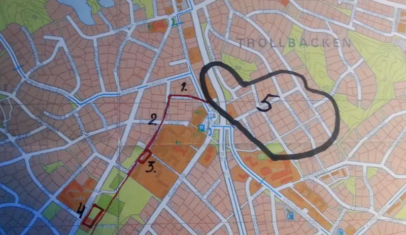 Platserna Bernt pratar om i programmet där det var dränering /avlopp vid Centralområdet Alleplan på 1940-talet.