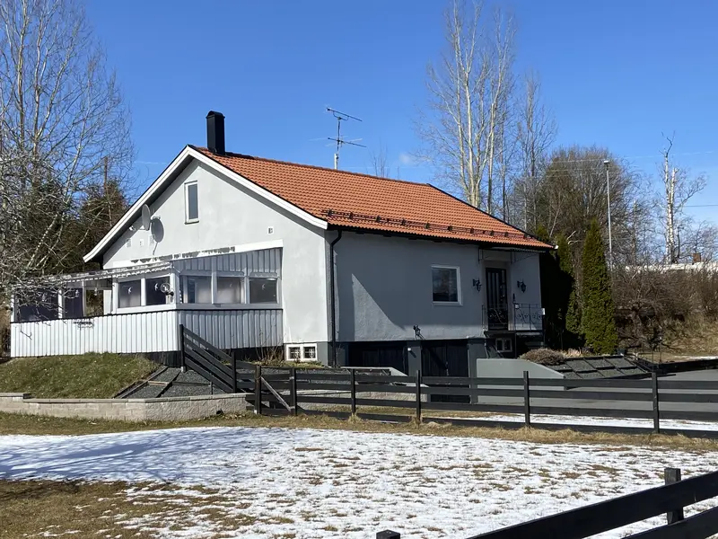 Ett planktimmerhus från 1933 med två lägenheter med två rum, kök och hall.
