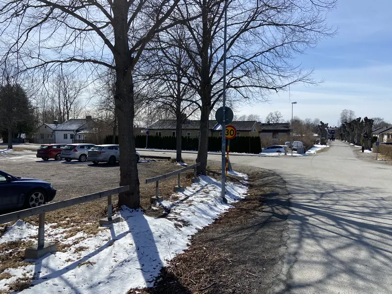 Här fanns tidigare Kumla Herrgårds ladugårdsbacke. Byggnaderna är borta sedan länge och blivit parkeringsplats.
