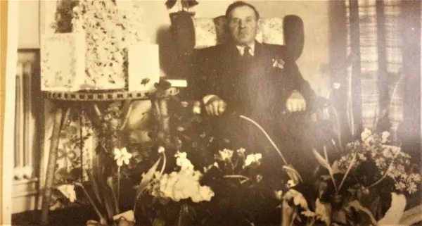 Bernhard Karlsson född 1879. Här på sin 70 årsdag 1949. Han avled på Skogsäng torp 1959 vid 70 års ålder.