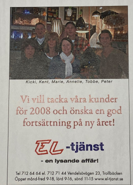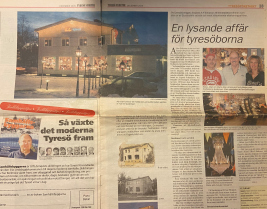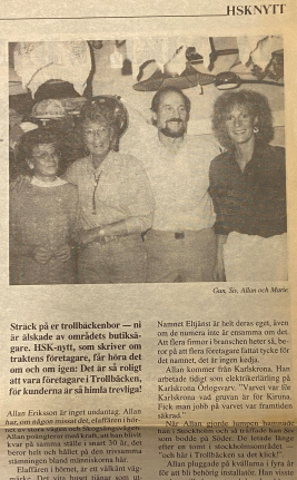 En artikel i Tyresö Nyheter från 2005 med bild på Tobbe, Allan och Marie.