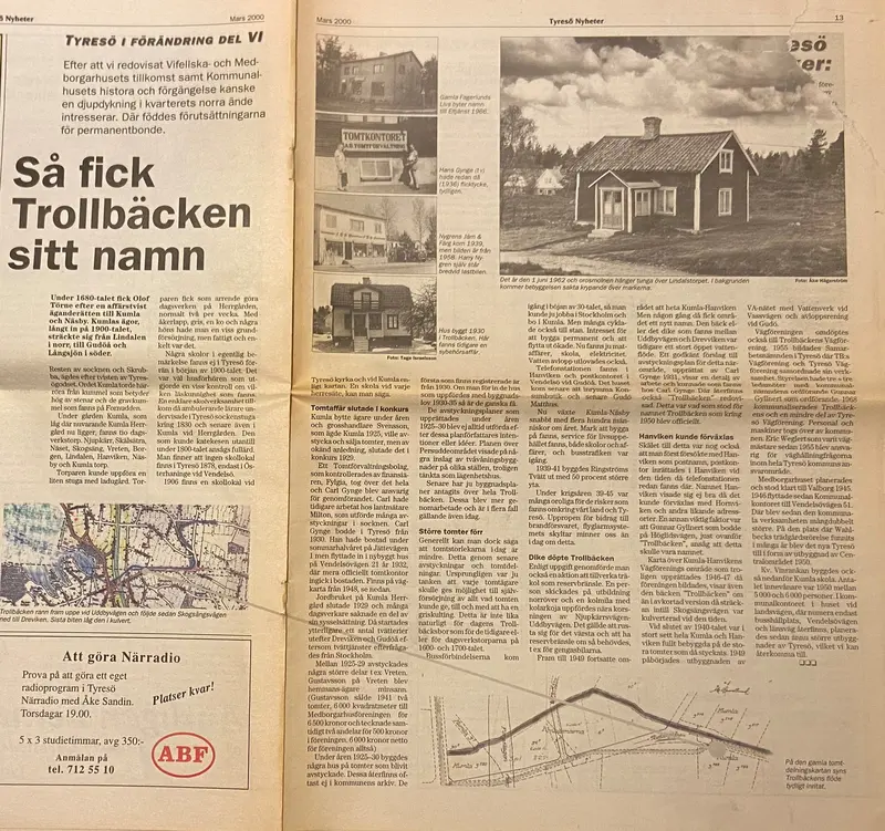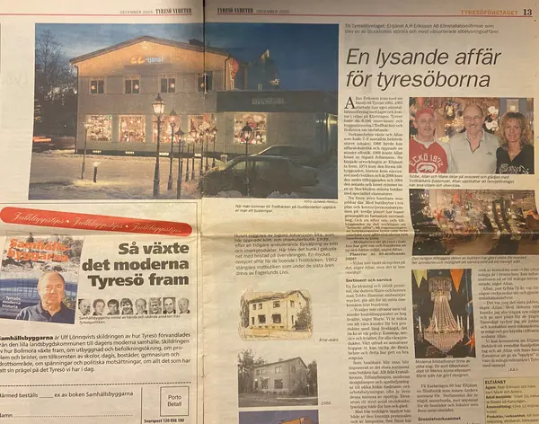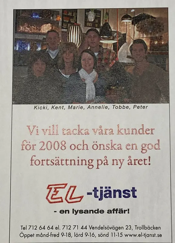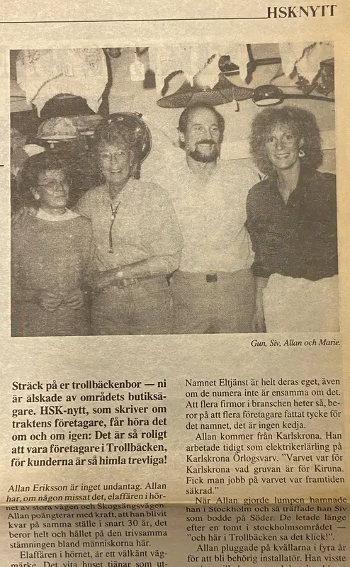 En artikel i Tyresö Nyheter från 2000 som berättar om Trollbäckens historia och en bild på huset där det står att "Gamla Fagerlunds Livs byter namn till Eltjänst 1966".
