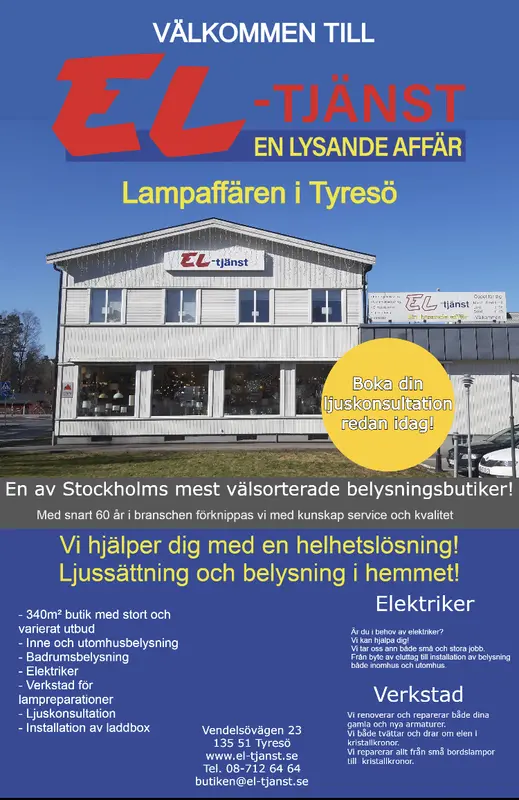 Annelie Wallman samtalar med Ann Sandin-Lindgren om hur viktigt det är med rätt ljus och hur det är att ha tagit över Tyresös berömda lampaffär El-tjänst i Trollbäcken. Hon berättar om hur företaget grundades på 60-talet av Allan Eriksson och sedan drevs vidare av dottern Marie och hennes man Tobbe. Man fortsätter att erbjuda elektrikertjänster, konsultation och har en utbyggd verkstad.