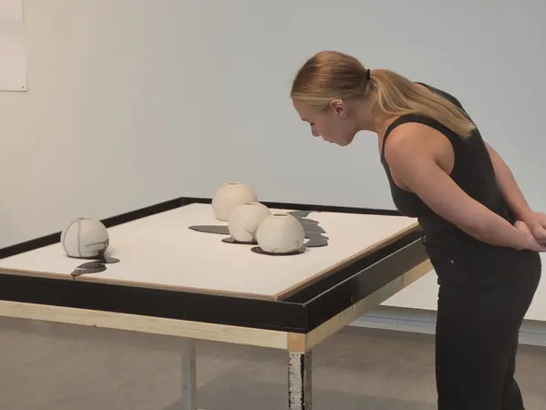 Inspirerad av en tuschfläck har Malin gjort en tredimensionell skulptur. Flodhästar?