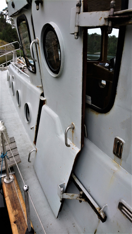 Lägg märke till ventilernas (de runda fönsterna) olika storlek och den finurligt tillverkade dörren till styrhytten. Foto Bernt Karlsson.