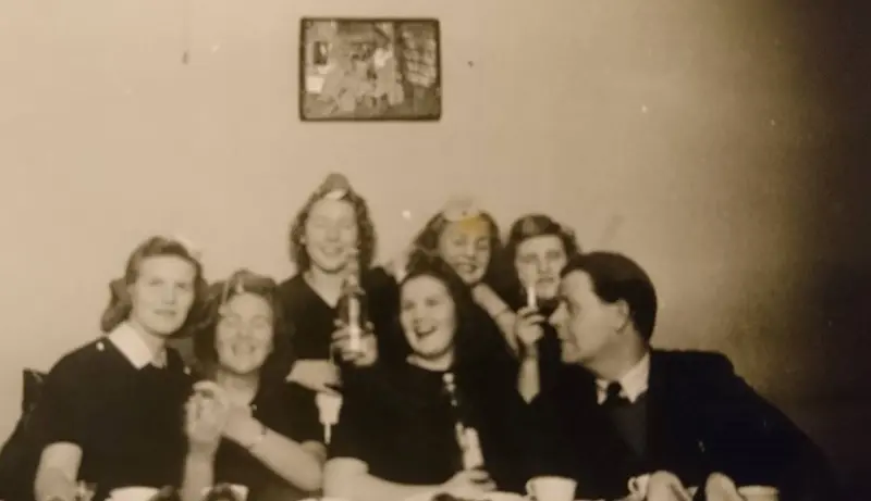 Charmören Enock Gusander med tjejligan. Bernts mor är i mitten.