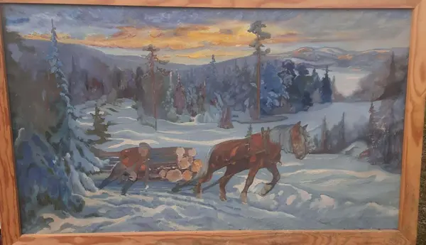Målning av Fred Skygårds pappa från den tid då det mesta av arbetet gjordes med häst och vagn