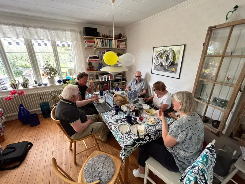 Idag är Björn Ågren aktiv i Tyresö Hembygdsförening som här sitter och förbereder nästa års kalender.