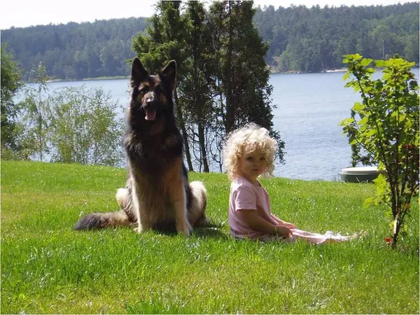 Annicas och Björns första barnbarn Ilona med deras sista hund Ida på Ällmora