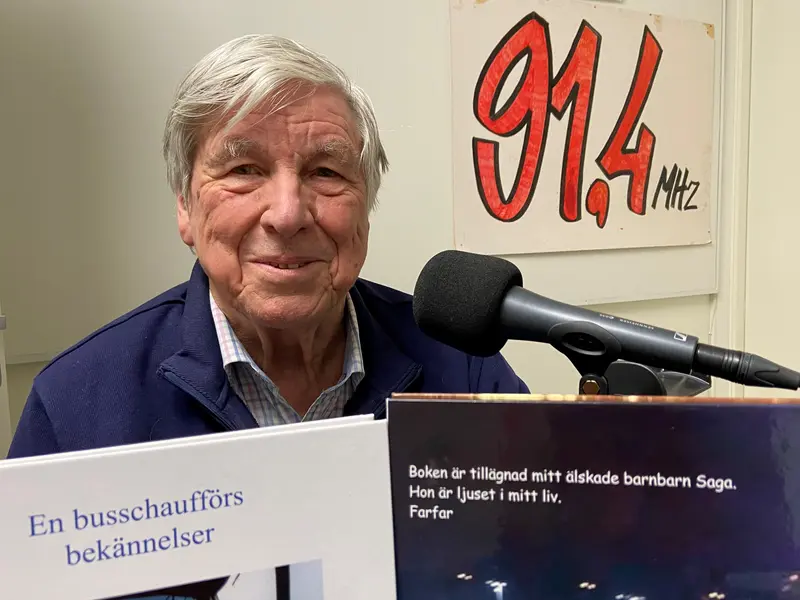 Bosse Carlberg har ett händelserikt liv bakom sig med musik, bussresor, politik, Vår Gård och travhästar. Numera är han aktiv i PRO Tyresös styrelse med programplanering, studiecirklar, konst och ibland underhåller han på dragspel (som i slutet av programmet). För Ann Sandin-Lindgren berättar han också om de böcker han skapat till nära och kära.