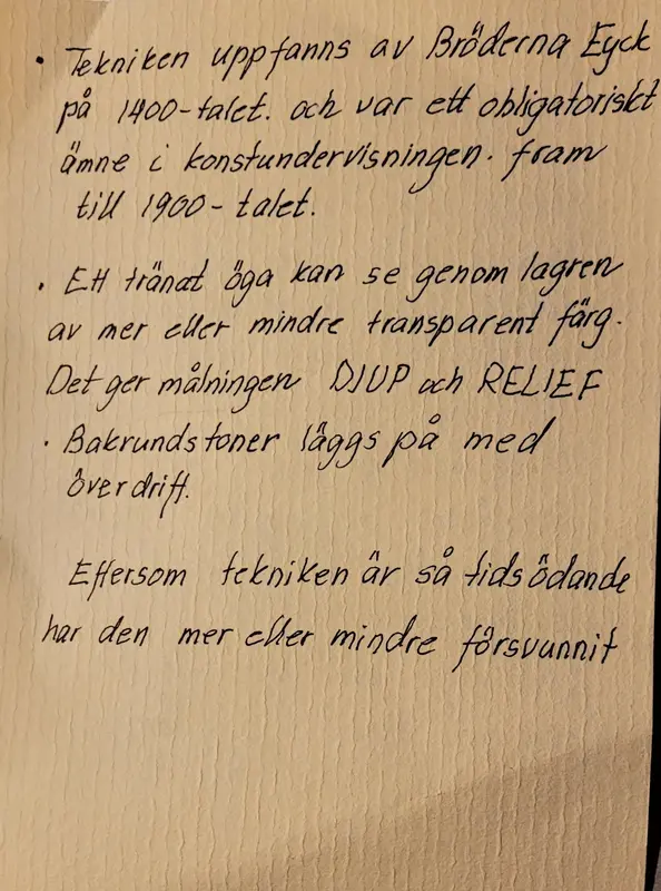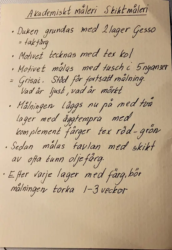Ragnhilds beskrivning av alla moment i akademiskt skiktmåleri.