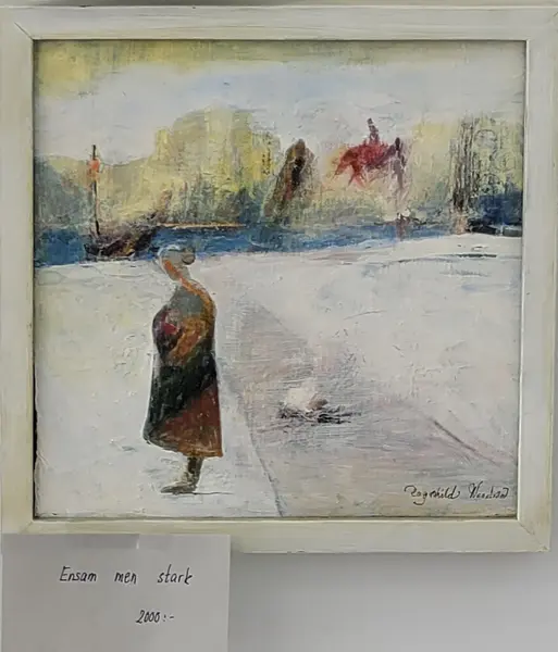Oljemålning "Ensam men stark" som ställdes ut på Galleri Eva 2022.