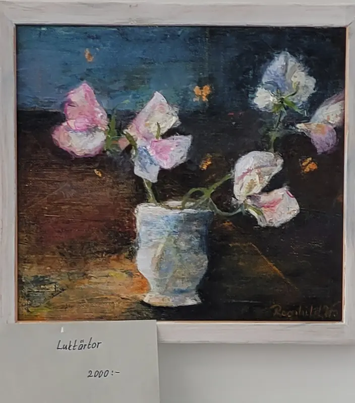 Denna målning "Luktärtor" fanns också på Galleri Eva 2022.