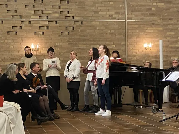 Julia och Lena fortsätter i lilla hallen och sjunga fler ukrainska folksånger