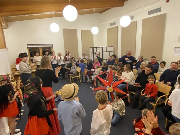 Följ med på detta reportage där de ukrainska flyktingarna i Tyresö med vänner firade en ukrainsk jul med dans, lekar, mat och musik i Bollmoradalens kyrka den 6 januari. Intervjuer med barn, deltagare, kyrkobesökare, prästen och volontärerna. Hör Julia Paramonova berätta om hur de har organiserat detta fina julfirande för barnen och vännerna.