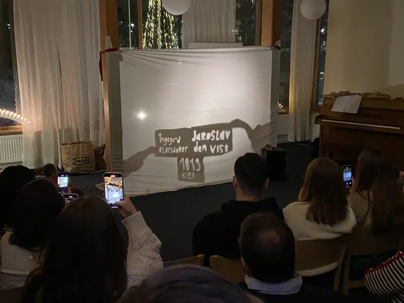 Skuggteater regisserad av Julia som berättade Sveriges och Ukrainas historia.