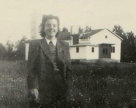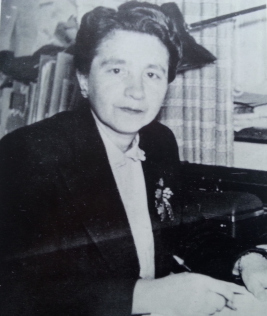 Hon syns som nr tre från vänster i nedre raden i mörkt hår.