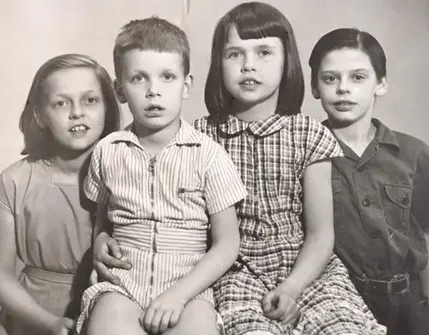 Från vänster: Christina f. 1943, lillebror Bubben f 1949, Gunilla f. 1945 och Mats f. 1942.