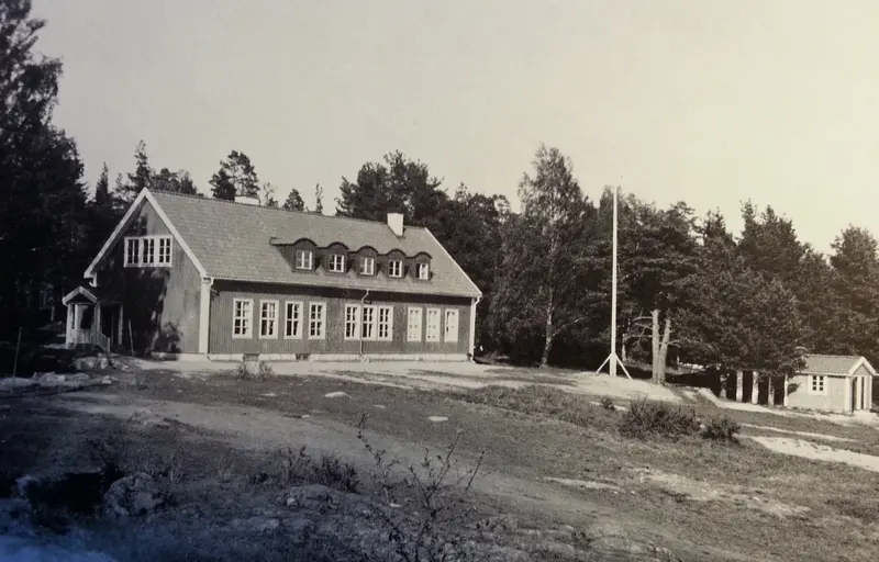 Det var en skolsal för alla klasser 1 - 6 , ett kapprum med två långbänkar, en dricksvattenbehållare för barnen och en vedeldad kamin. Barnen tog med egna smörgåsar. Till höger fanns en liten bostad för läraren. Torrtoa på gården!
