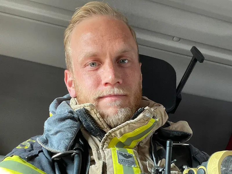 Niklas som flyttade till Farmarstigen för två år sedan med sin familj gillar verkligen sitt jobb. Han berättar för sin granne Ann Sandin-Lindgren om hur arbetet som brandman har utvecklats under de 9 år han har arbetet och om de utmaningar som finns. Han ger också råd om vad man kan göra själv för att förhindra bränder.