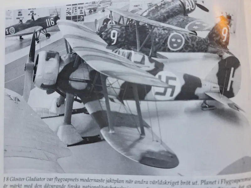 Den här sortens flygplan använde man på Drevviken 1942. J8 Gloster Gladiator som ett jakt- och spaningsflygplan. Bernts svärfar Gunnar Hogman var värnpliktig flygförare och flög och bodde på Kumla Herrgård.