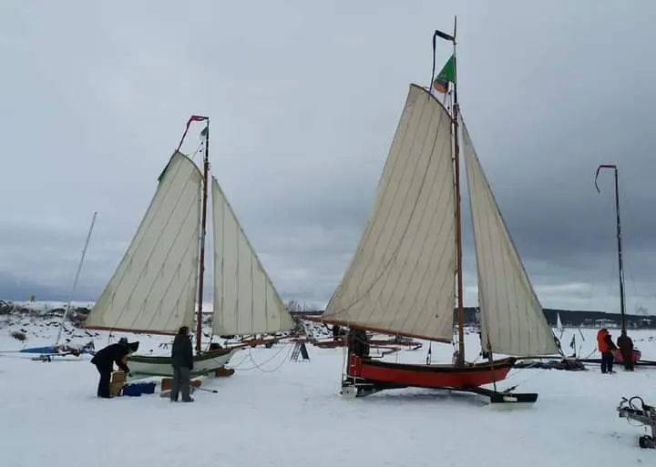 De gamla holländska jakterna på ett besök på Siljan i februari i år som Bernt berättar om.