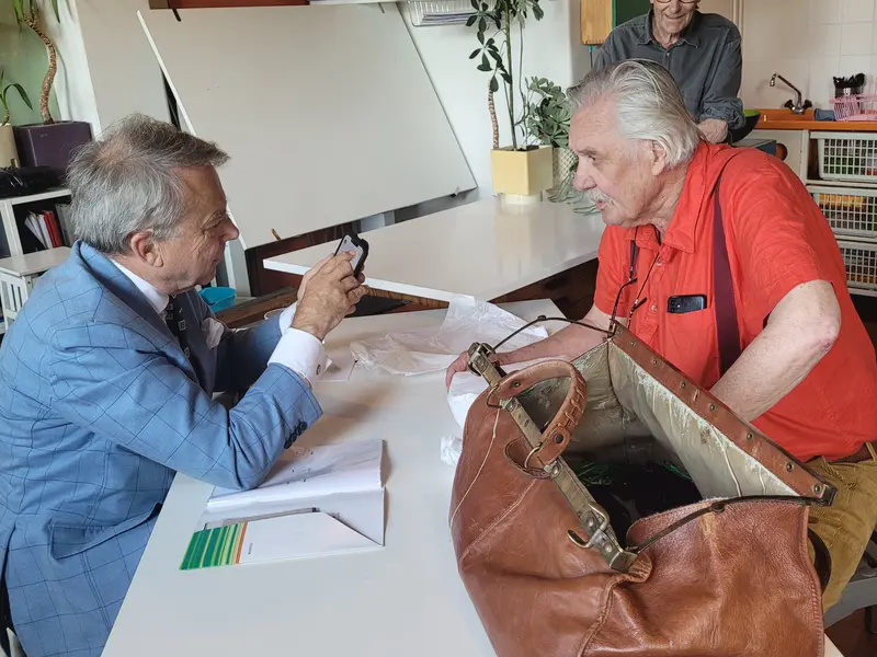 Knut Knutson granskar en silverkanna åt Åke Cyrus