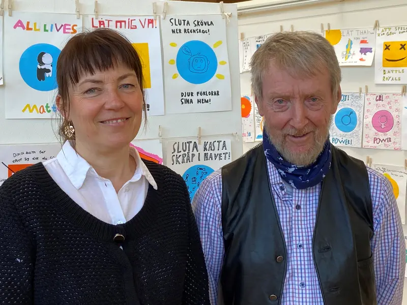 Charlotte Gyllner till höger och ordförande i Kultur- och Fritidsnämnden Dick Bengtsson till höger.