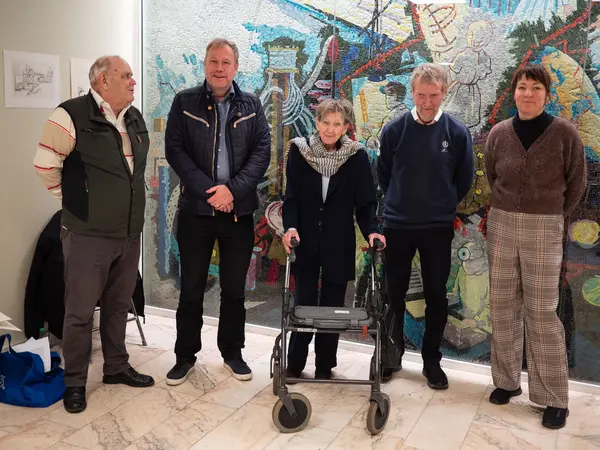 Invigningen av mosaikväggen som kom fram 2021.