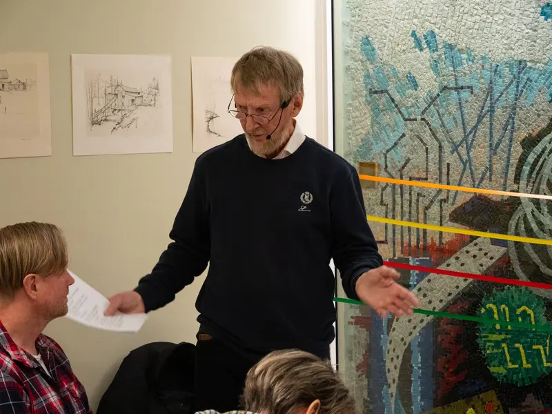 Bernt Karlsson berättar historien om hur mosaiken skapades, gömdes och sedan kom fram.