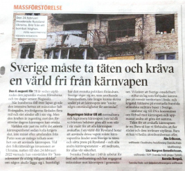 På Hiroshimadagen 6 augusti 2023 gav sig Tyresöradions Ann Sandin-Lindgren in till Stockholm och lyssnade på Rolf Ekéus i Storkyrkan som bl.a. pratade om att medlemmarna i NATO är skyldiga att medverka i kärnvapenkrig. Även röster från en manifestation i Kungsträdgården hörs. En insändare i Mitt i Tyresö från TUFFs ordförande läses upp.