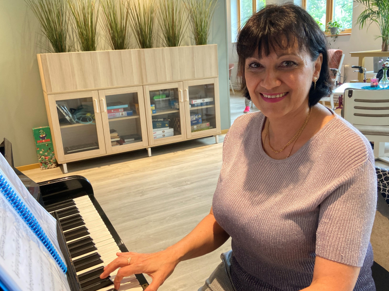 På träffpunkten 65+ "Kopp och Själ" vid Stadsparken händer det mycket varje vecka. Ann Sandin-Lindgren träffar pianisten Natalia som spelar vacker musik för pensionärerna. Eva-Kajsa och Renée berättar om verksamheten och många besökare beskriver hur viktigt det är att få träffas med gott kaffe och fina vänner.