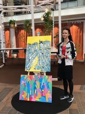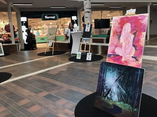 Programmakarna Catarina Johansson Nyman, Ann Sandin-Lindgren, Leif Bratt och bisittaren Dala Dahlström träffas i Centrum för en AW med lyssnarna. Den här kvällen är det lokala konstnärer som ställer ut. Flera bekanta intervjuas.