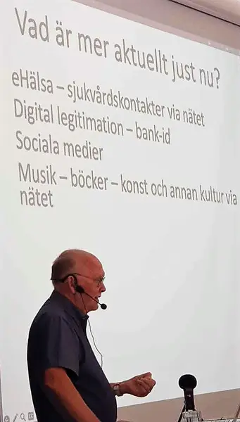 Startträff. Nya och gamla medlemmar hälsades välkomna till SeniorNet Tyresö. Ordf Carl-Olof Strand drog SeniorNets historia. Ann-Britt Laerum, Eva Blommegård, Sidsel Nybö och Ann Clemensberättade om verksamheten. Programmakare Gunnel Agrell Lundgren.