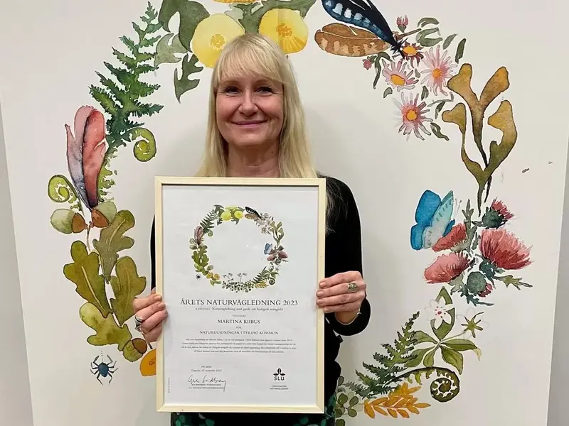 Martina Kiibus, som guidar Tyresöbor och andra intresserade runt på vandringar i Tyresös fantastiska natur har fått pris i kategorin ”Årets Naturvägledning om biologisk mångfald med guide” av SLU. Hon berättar för Ann Sandin-Lindgren vad priset innebär och i programmet får vi höra motiveringen och hennes tacktal.