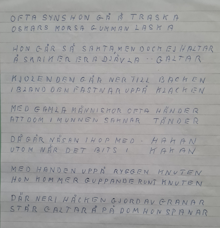En rebus som Bertil Lind gjorde om Gumman Laska "Edra jävla galtar".