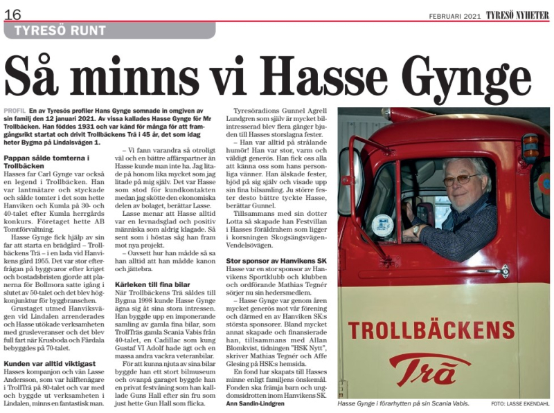En arkivpärla från 1996 då Åke Sandin intervjuar Hasse Gynge (1931-2021) om hans uppväxt och hur han startade sin firma Trollbäckens Trä. Om Trollbäcken på 30- och 40-talet, gårdarna, torpen, tvätterierna, Kumla skola och sin skolgång. Om hur han tänker när han 1996 snart ska gå i pension.