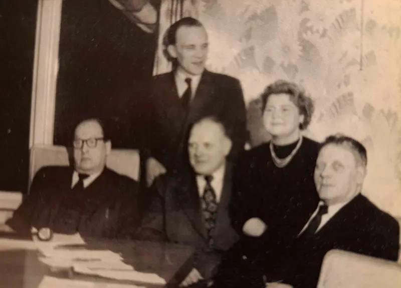 Kommunmöte från 1960-talet om Bollmora! Alfs pappa Håkan Hasselgren till höger. De övriga är fr.v. John Wisén, Gunnar Gyllnert, Gertrud Sjögren och stående Claes Turesson.