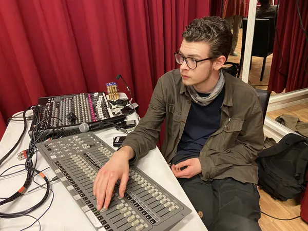 Ljud och ljusteknikern Aron Jakobsson.