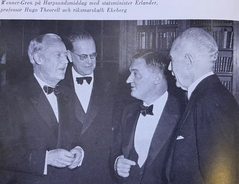 Wenner-Gren på Harpsundsmiddag med statsminister Erlander, professor Hugo Theorell och riksmarskalk Ekeberg.