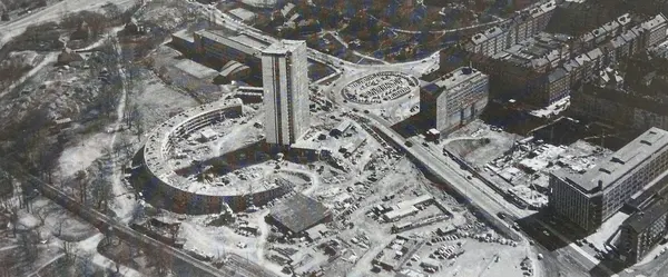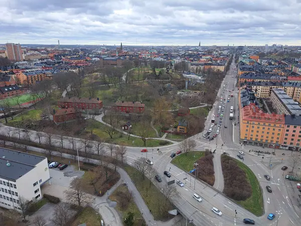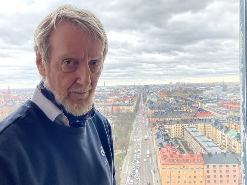 Bernt med utsikten högst upp på Wenner-Gren Center - Sveavägen söderut