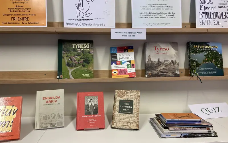 Det finns en fin utställning på Tyresö bibliotek där man kan hitta många av de böcker som handlar om Tyresö.