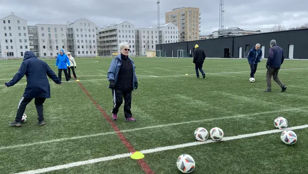 En kall aprilmorgon träffade Ann Sandin-Lindgren ett glatt gäng nere på Tyresövallen. Tränaren och entusiasten Dala Dahlström berättar om hur Gå-Fotbollen fungerar och presenterar deltagarna. Simon Mahlmstedt från Tyresö FF är med på planen och bjuder in fler deltagare på tisdagar kl. 10.00. Alla som är 55+ är välkomna!