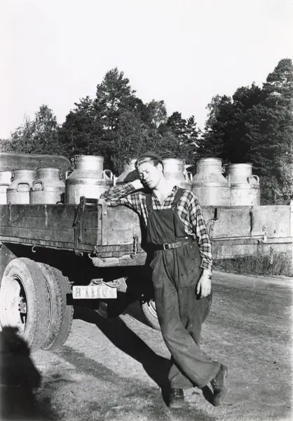 Bertil Lind vid mjölkbilen. Fotograf okänd. Bild är sannolikt tagen 1944.