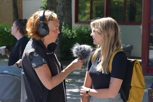 Tyresöradions Ann Sandin-Lindgren intervjuar Mitt i Tyresös reporter Maja Johansson som var på plats för att göra ett reportage.