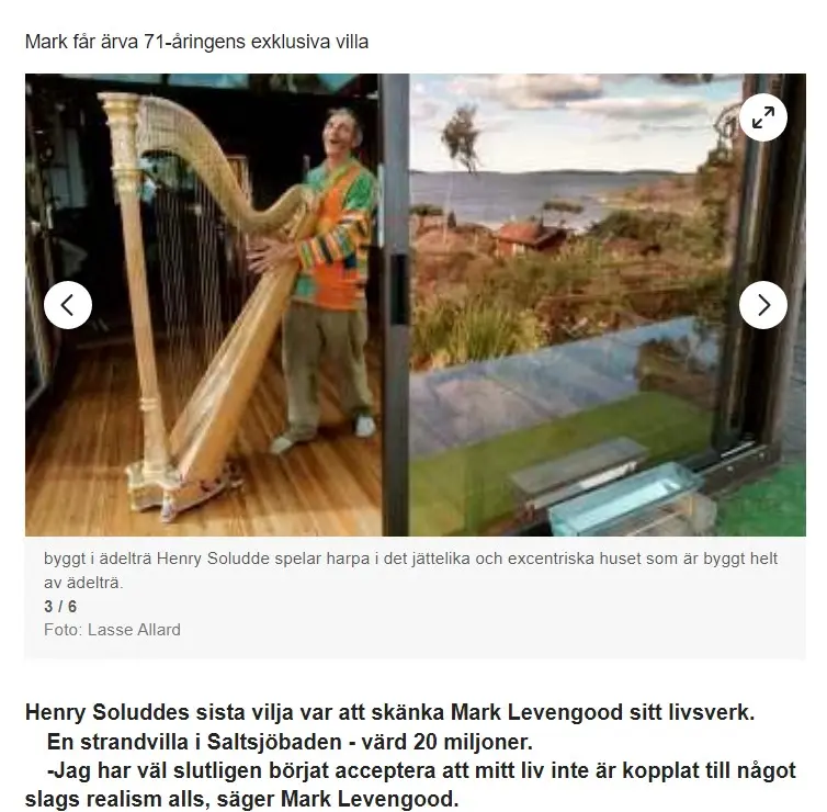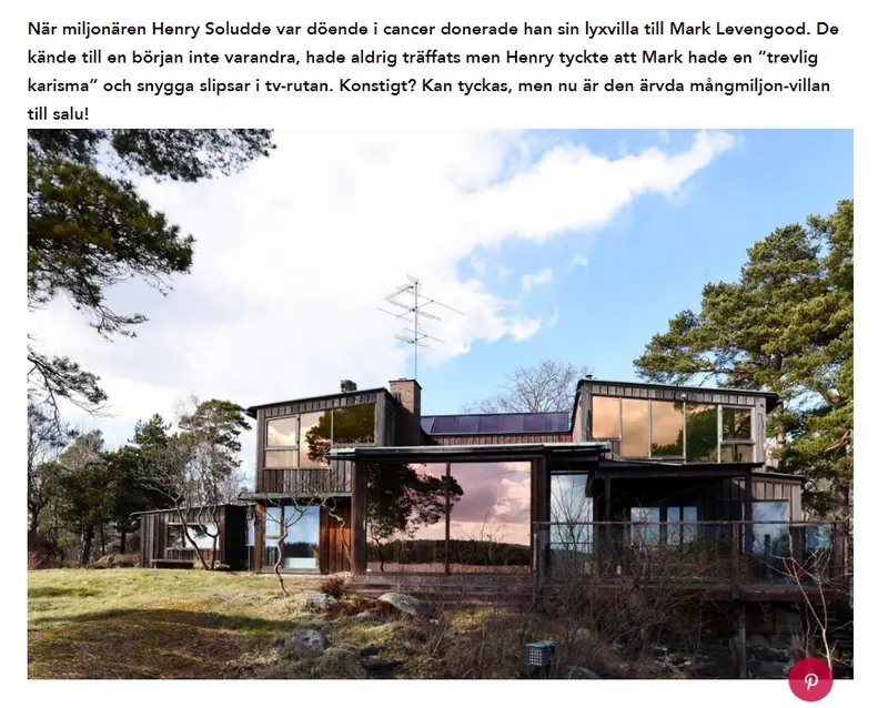 När miljonären Henry Soludde var döende i cancer donerade han sin lyxvilla till Mark Levengood. De kände till en början inte varandra, hade aldrig träffats men Henry tyckte att Mark hade en “trevlig karisma” och snygga slipsar i tv-rutan.