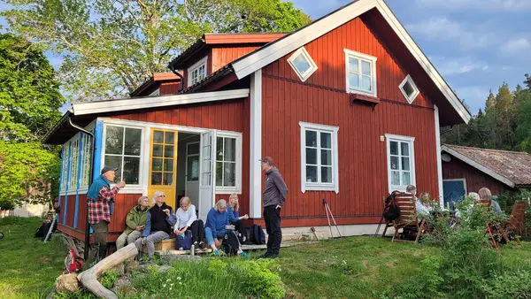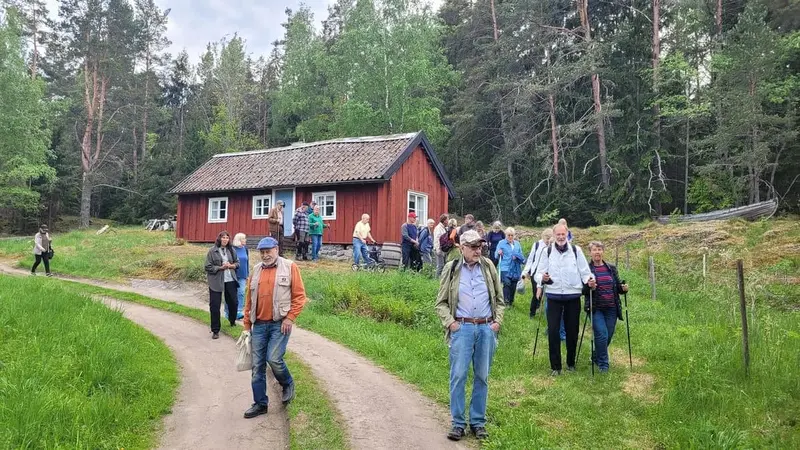 Tyresö hembygdsförening besökte Sisshammar i maj 2024 då Tomas Andreason berättade om gårdens historia. Här sitter de framför det fina boningshuset.